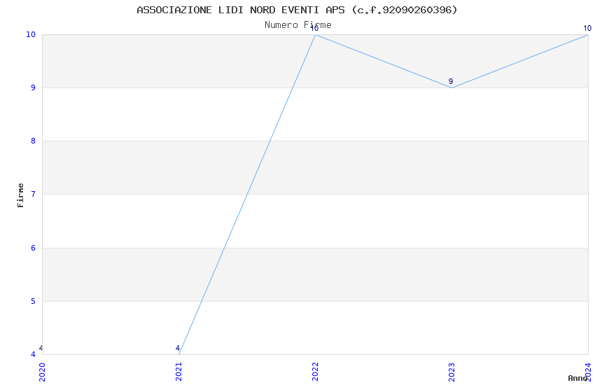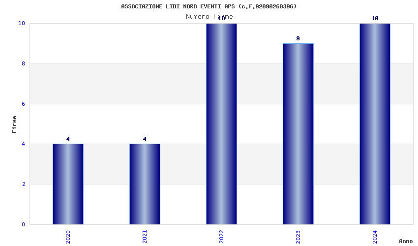 | Anno | Firme | Importi | Media | Naz. | Reg. | Prov. | Comu. |