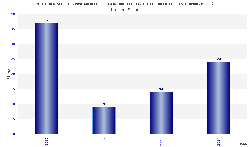 | Anno | Firme | Importi | Media | Naz. | Reg. | Prov. | Comu. |