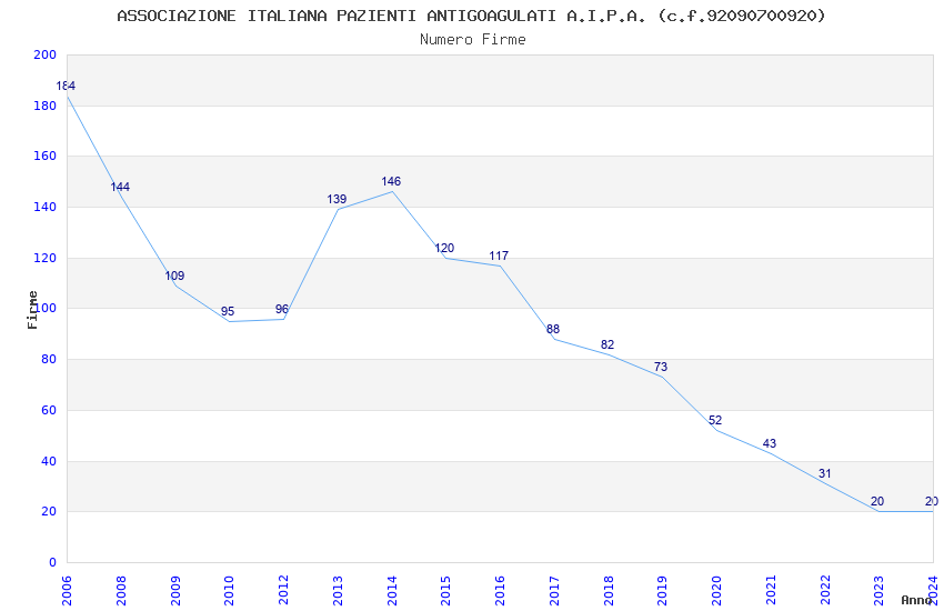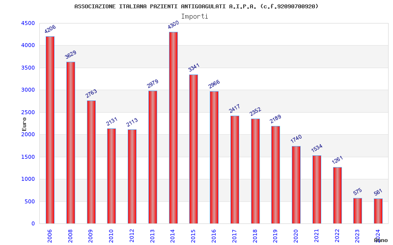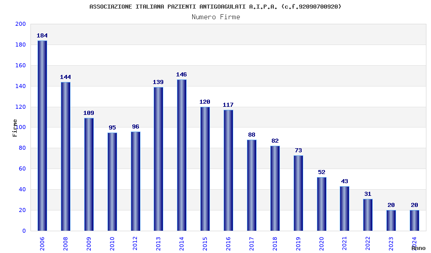 | Anno | Firme | Importi | Media | Naz. | Reg. | Prov. | Comu. |
