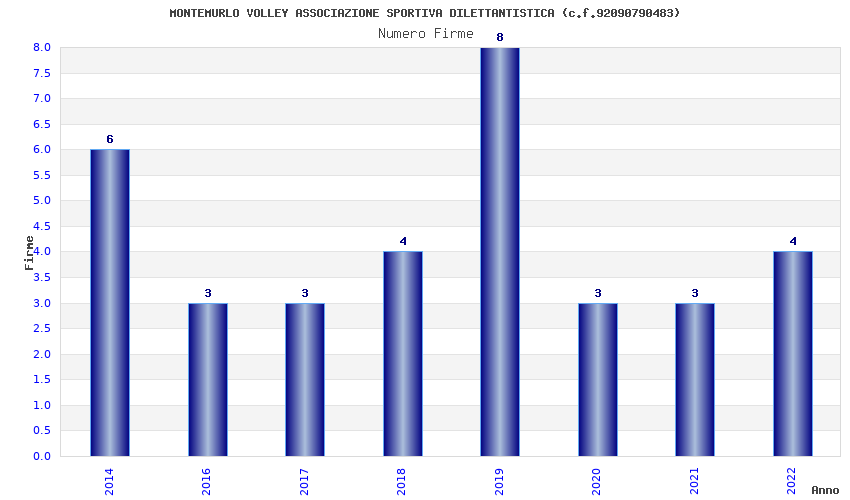 | Anno | Firme | Importi | Media | Naz. | Reg. | Prov. | Comu. |