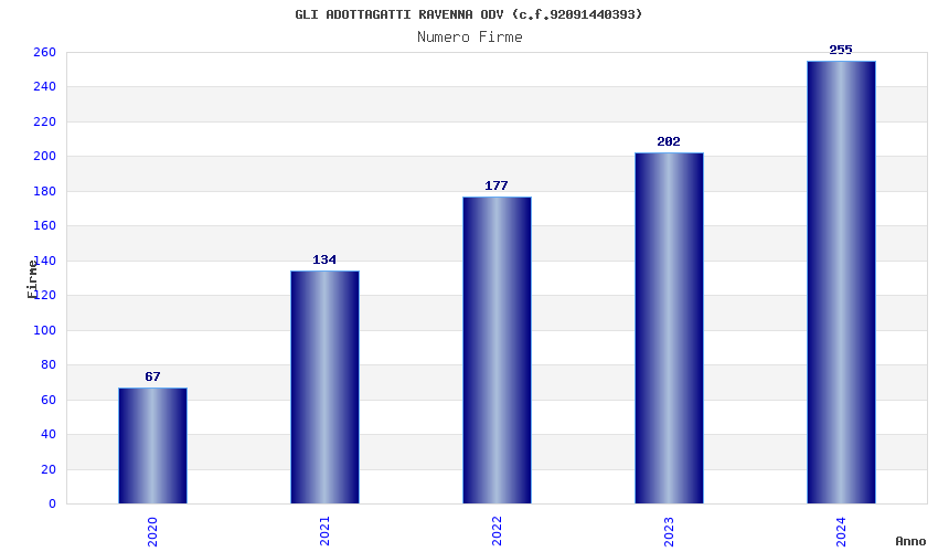 | Anno | Firme | Importi | Media | Naz. | Reg. | Prov. | Comu. |