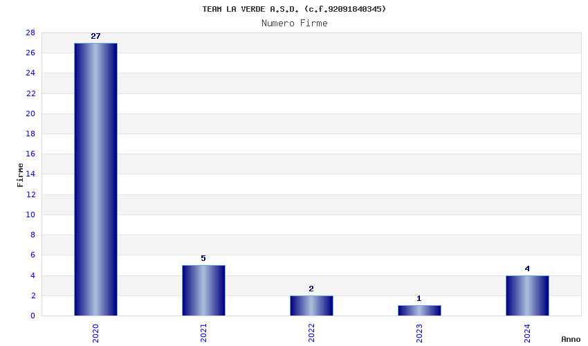 | Anno | Firme | Importi | Media | Naz. | Reg. | Prov. | Comu. |