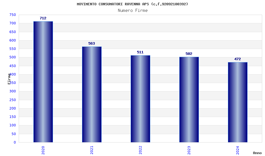 | Anno | Firme | Importi | Media | Naz. | Reg. | Prov. | Comu. |