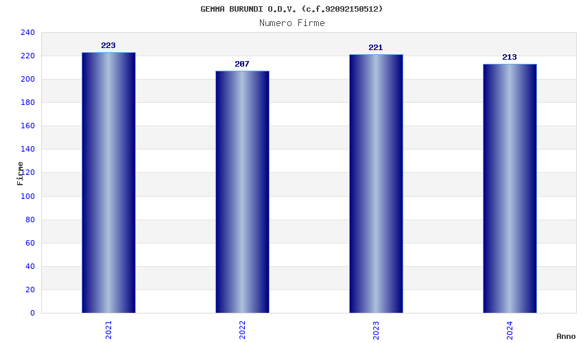 | Anno | Firme | Importi | Media | Naz. | Reg. | Prov. | Comu. |