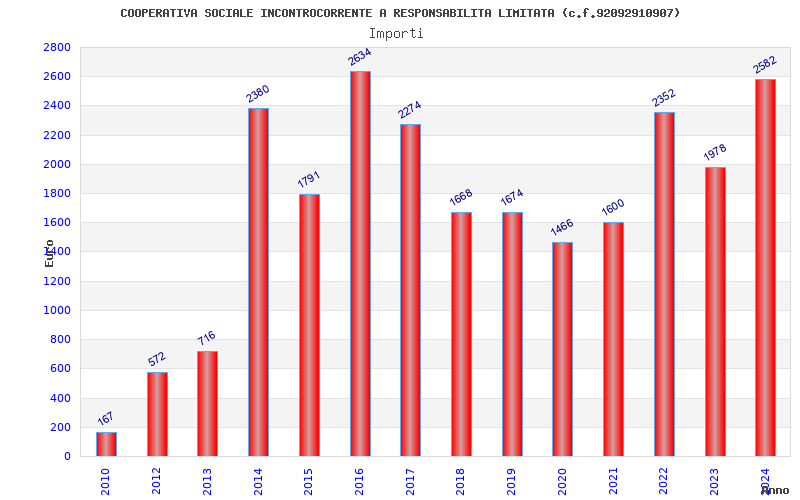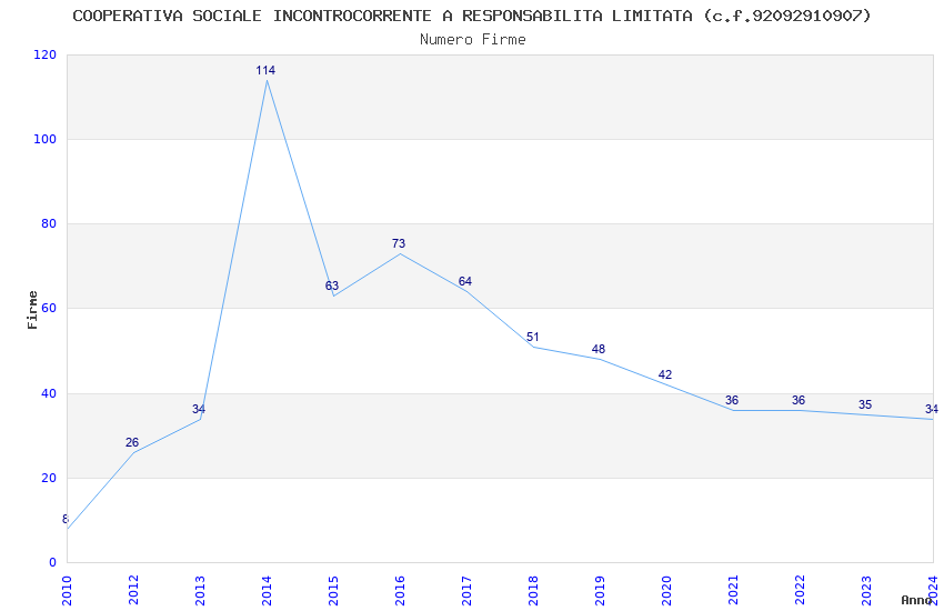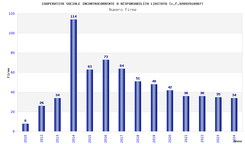 | Anno | Firme | Importi | Media | Naz. | Reg. | Prov. | Comu. |