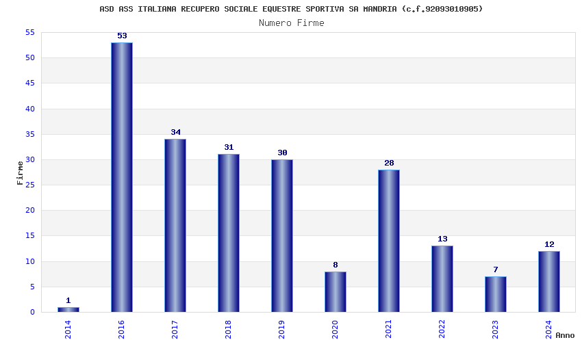 | Anno | Firme | Importi | Media | Naz. | Reg. | Prov. | Comu. |