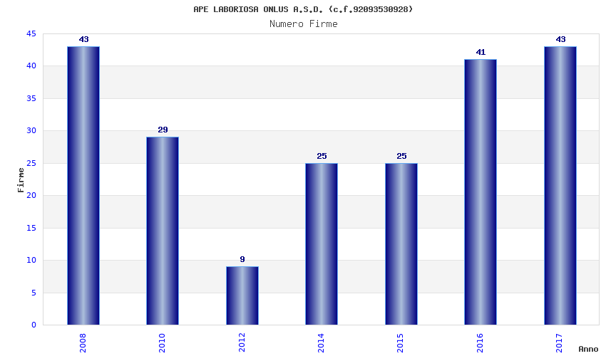 | Anno | Firme | Importi | Media | Naz. | Reg. | Prov. | Comu. |