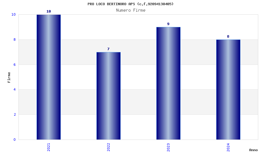 | Anno | Firme | Importi | Media | Naz. | Reg. | Prov. | Comu. |