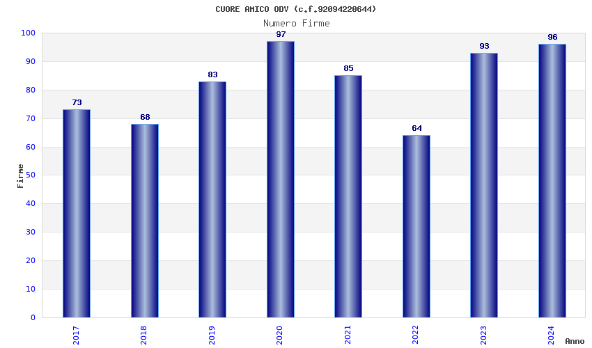 | Anno | Firme | Importi | Media | Naz. | Reg. | Prov. | Comu. |