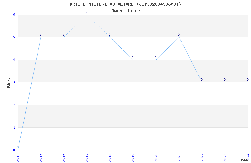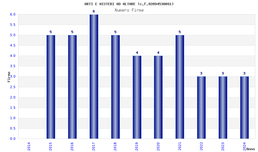 | Anno | Firme | Importi | Media | Naz. | Reg. | Prov. | Comu. |