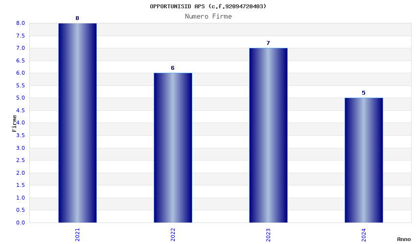 | Anno | Firme | Importi | Media | Naz. | Reg. | Prov. | Comu. |