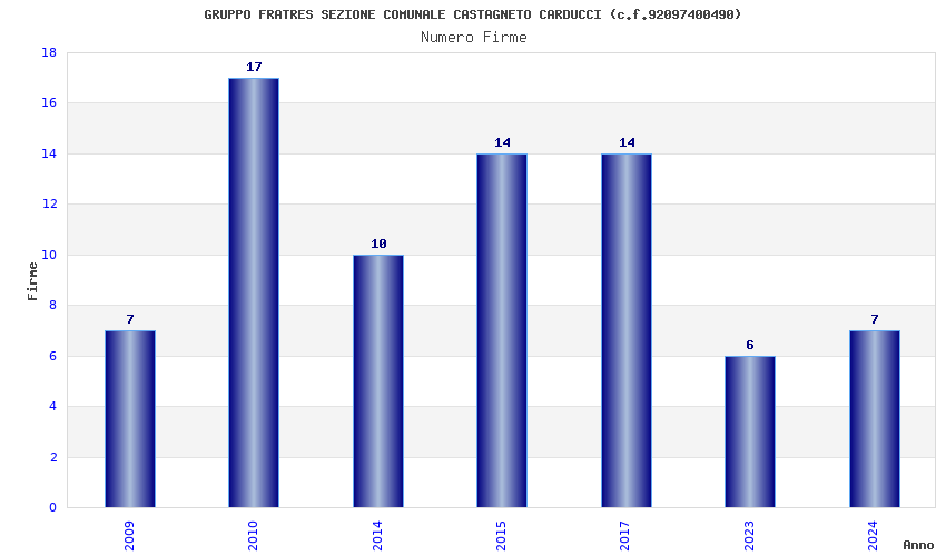 | Anno | Firme | Importi | Media | Naz. | Reg. | Prov. | Comu. |