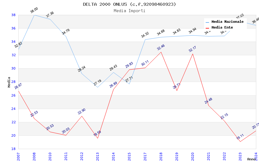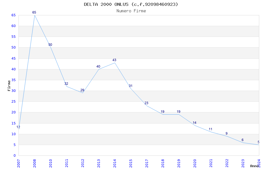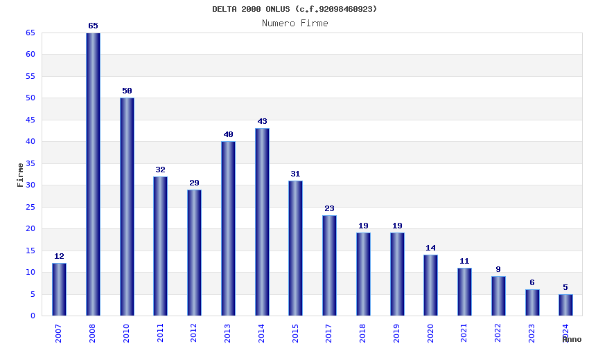 | Anno | Firme | Importi | Media | Naz. | Reg. | Prov. | Comu. |