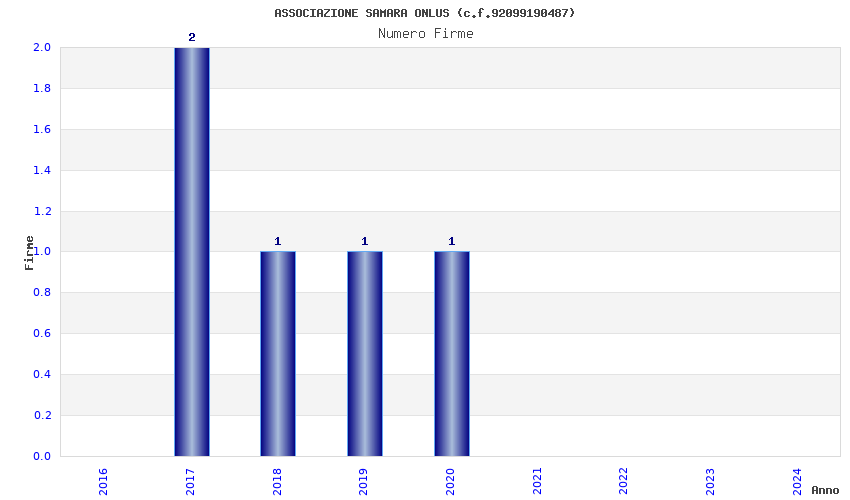 | Anno | Firme | Importi | Media | Naz. | Reg. | Prov. | Comu. |