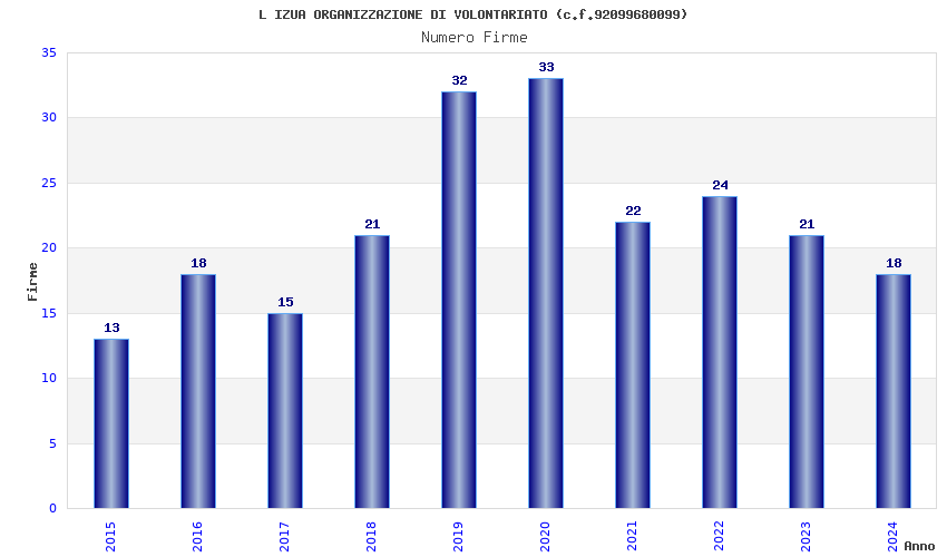 | Anno | Firme | Importi | Media | Naz. | Reg. | Prov. | Comu. |