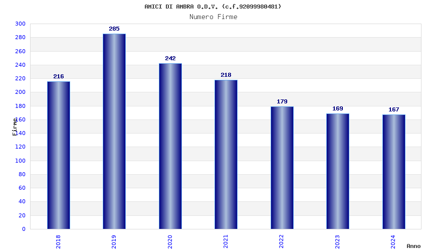 | Anno | Firme | Importi | Media | Naz. | Reg. | Prov. | Comu. |