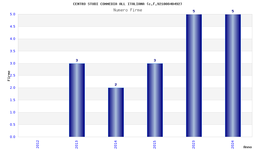 | Anno | Firme | Importi | Media | Naz. | Reg. | Prov. | Comu. |