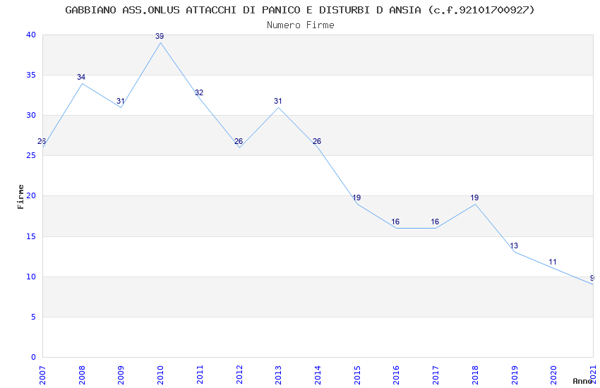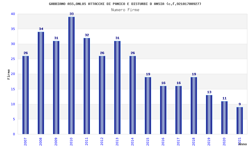 | Anno | Firme | Importi | Media | Naz. | Reg. | Prov. | Comu. |