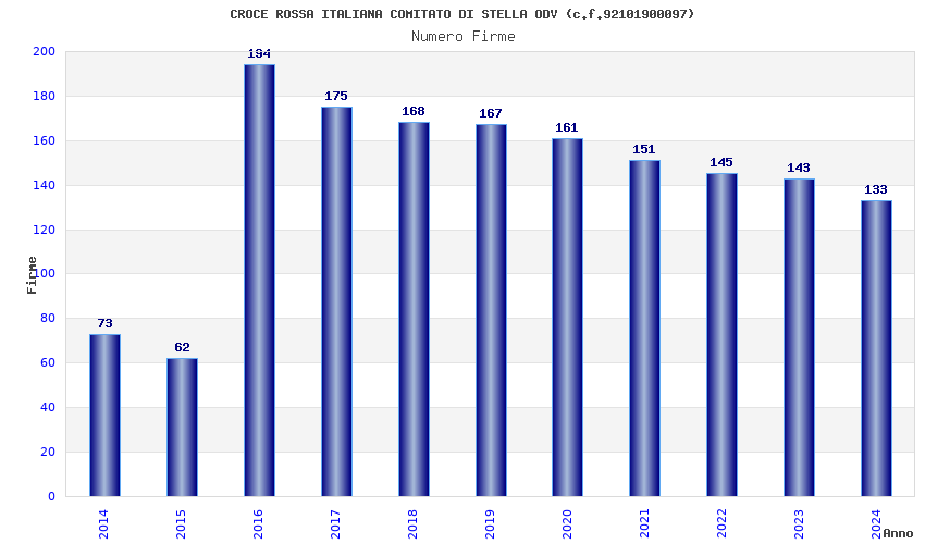| Anno | Firme | Importi | Media | Naz. | Reg. | Prov. | Comu. |