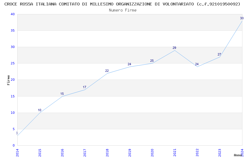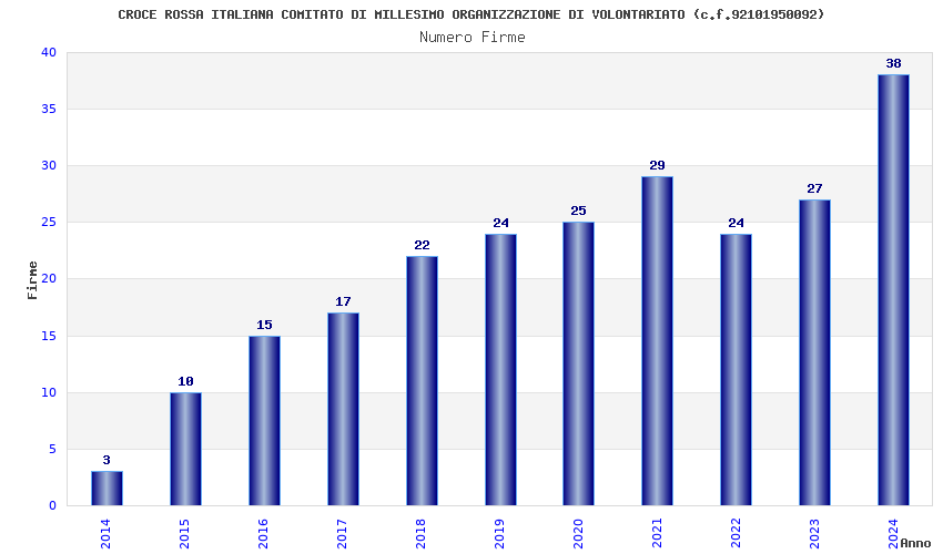 | Anno | Firme | Importi | Media | Naz. | Reg. | Prov. | Comu. |