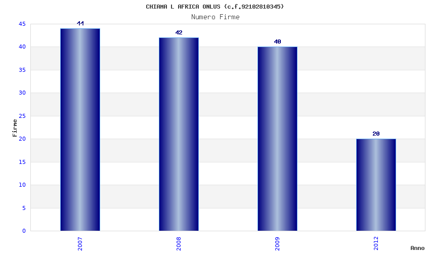 | Anno | Firme | Importi | Media | Naz. | Reg. | Prov. | Comu. |