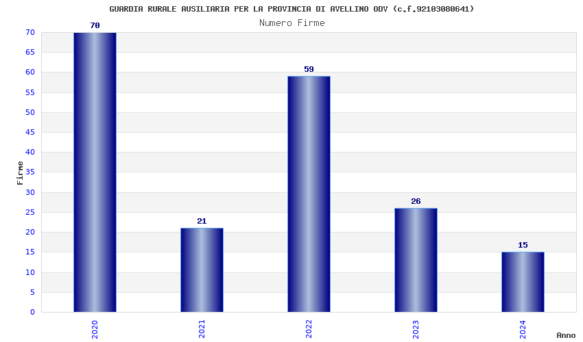 | Anno | Firme | Importi | Media | Naz. | Reg. | Prov. | Comu. |
