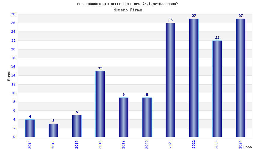 | Anno | Firme | Importi | Media | Naz. | Reg. | Prov. | Comu. |