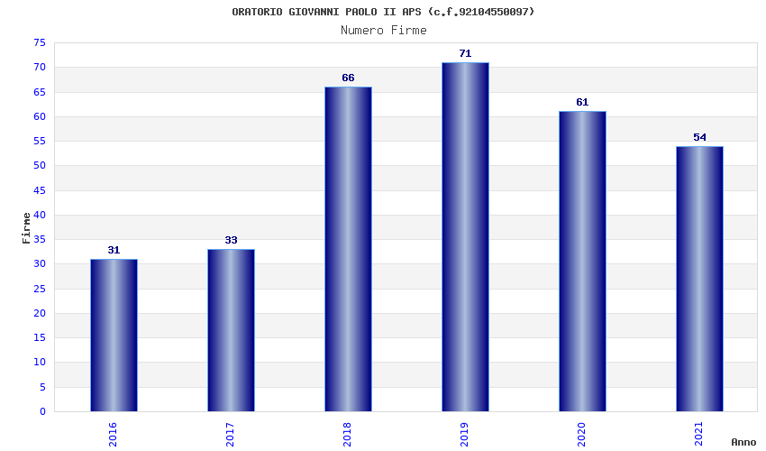 | Anno | Firme | Importi | Media | Naz. | Reg. | Prov. | Comu. |
