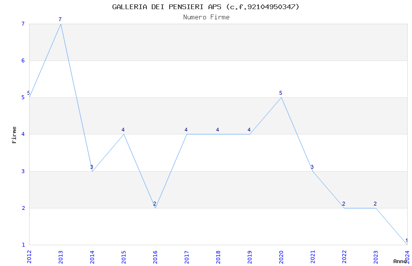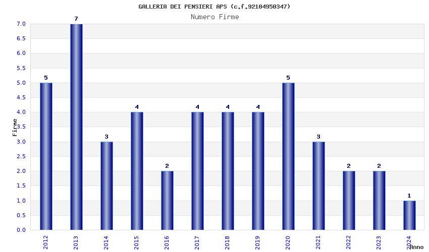 | Anno | Firme | Importi | Media | Naz. | Reg. | Prov. | Comu. |