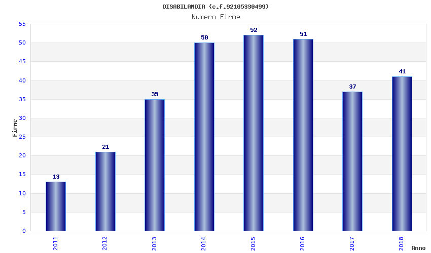 | Anno | Firme | Importi | Media | Naz. | Reg. | Prov. | Comu. |