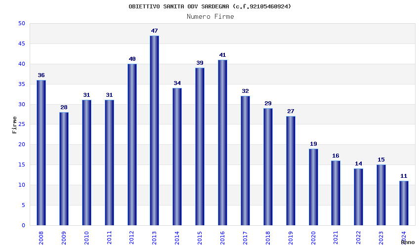 | Anno | Firme | Importi | Media | Naz. | Reg. | Prov. | Comu. |