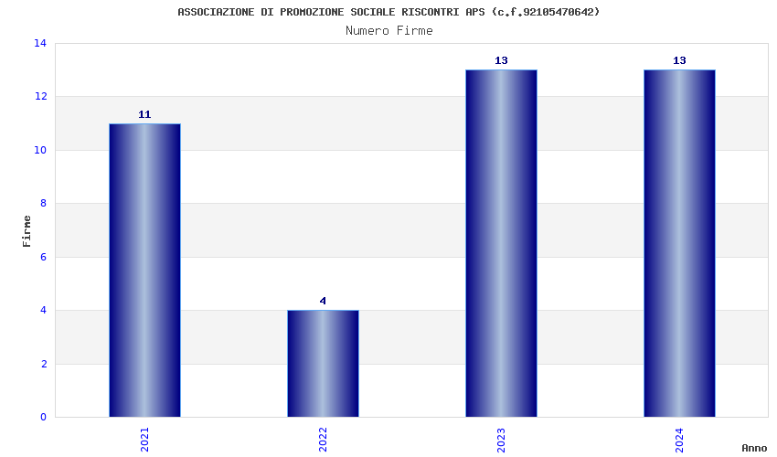 | Anno | Firme | Importi | Media | Naz. | Reg. | Prov. | Comu. |