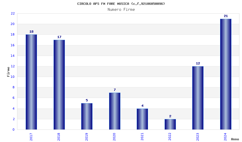 | Anno | Firme | Importi | Media | Naz. | Reg. | Prov. | Comu. |