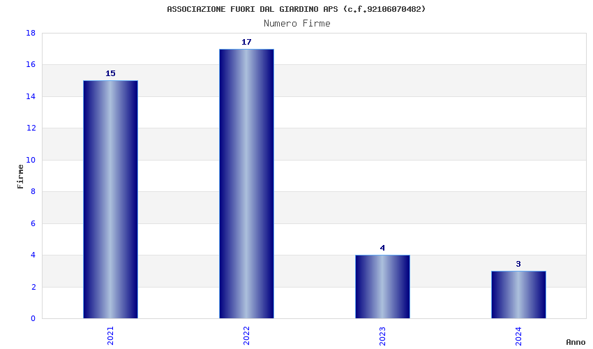 | Anno | Firme | Importi | Media | Naz. | Reg. | Prov. | Comu. |