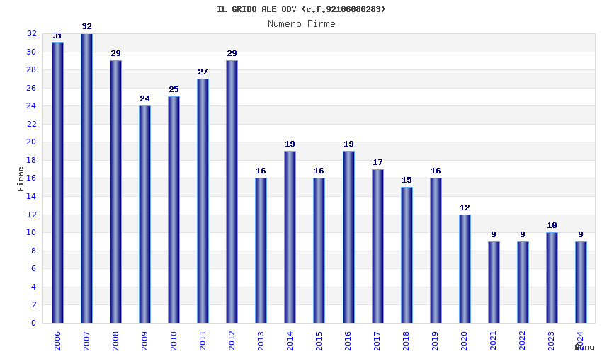 | Anno | Firme | Importi | Media | Naz. | Reg. | Prov. | Comu. |