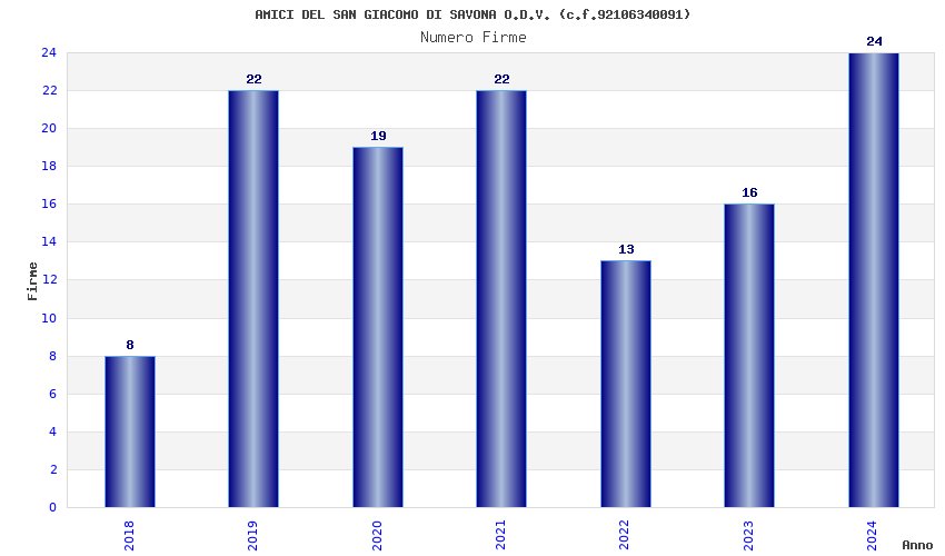 | Anno | Firme | Importi | Media | Naz. | Reg. | Prov. | Comu. |
