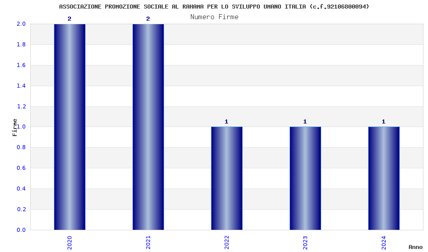 | Anno | Firme | Importi | Media | Naz. | Reg. | Prov. | Comu. |