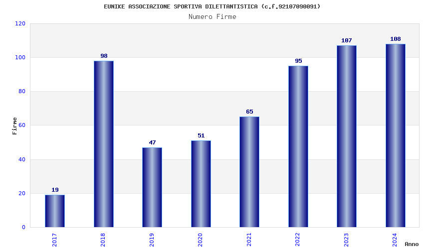 | Anno | Firme | Importi | Media | Naz. | Reg. | Prov. | Comu. |