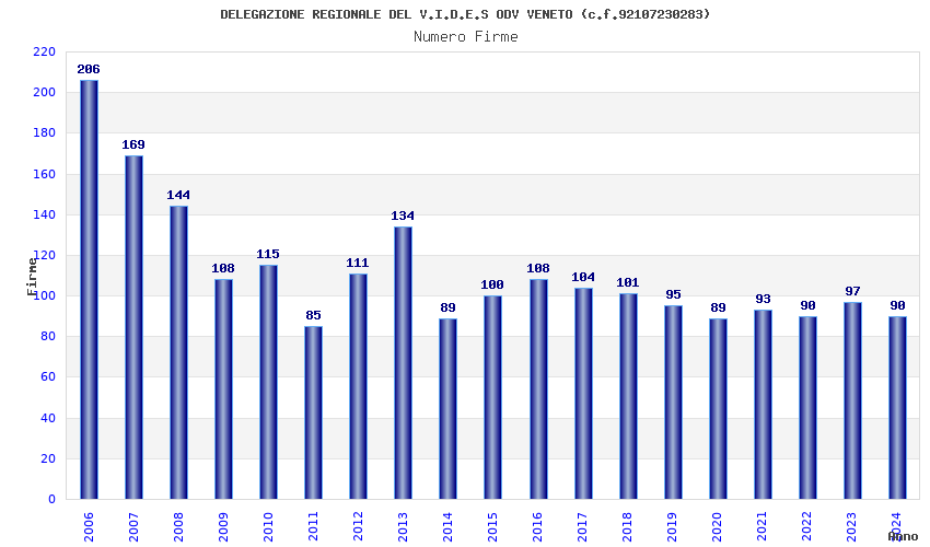 | Anno | Firme | Importi | Media | Naz. | Reg. | Prov. | Comu. |