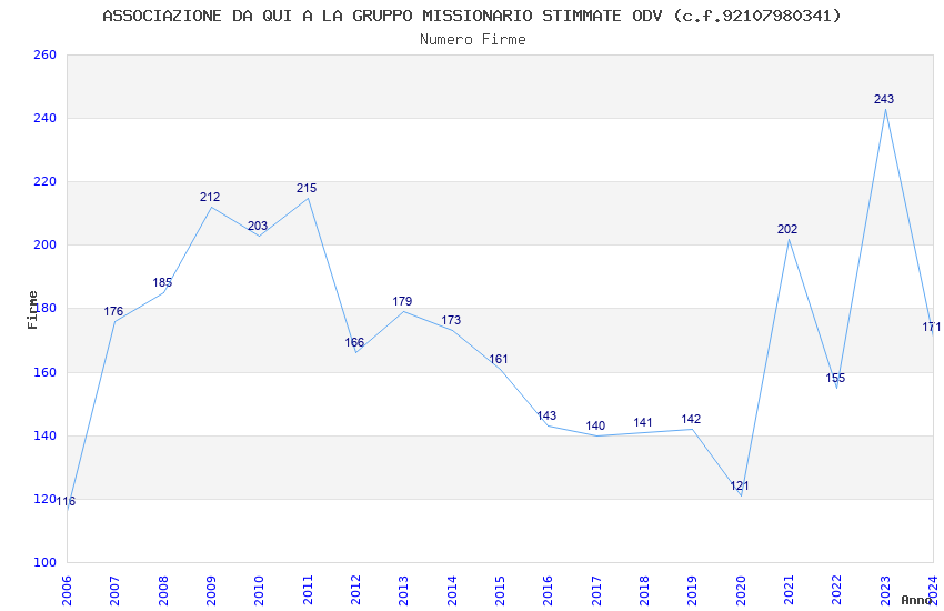 | 2024 | 171 | 5.065,93 | 29,63 | 10.607 | 901 | 121 | 73 |