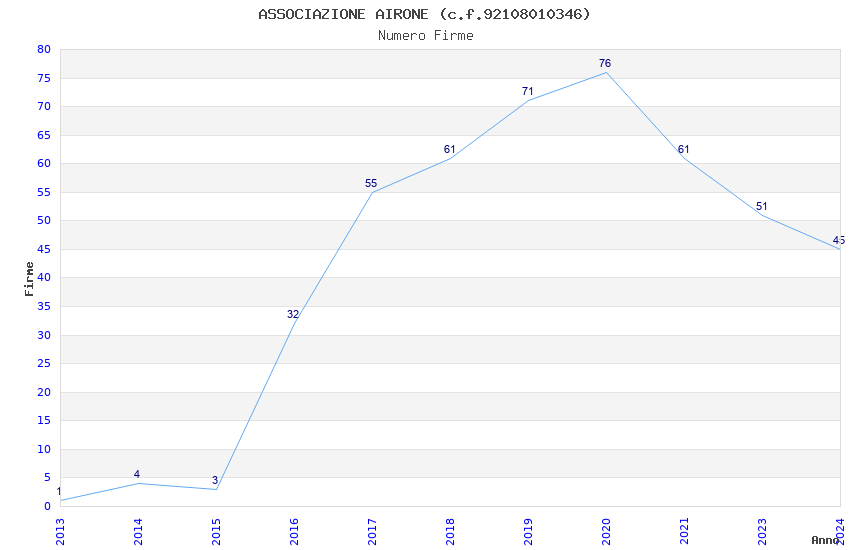| 2020 | 76 | 5.677,03 | 74,70 | 9.987 | 904 | 125 | 2 |