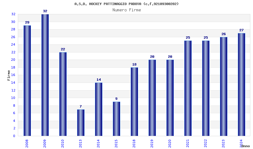 | Anno | Firme | Importi | Media | Naz. | Reg. | Prov. | Comu. |