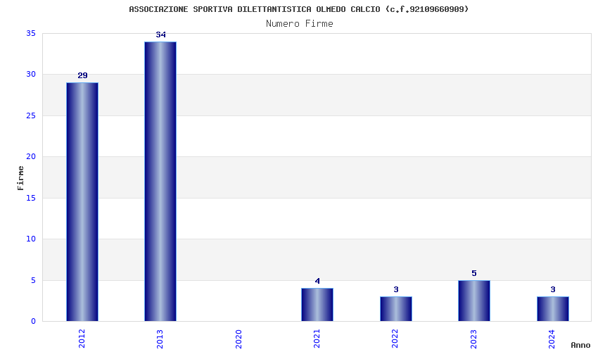 | Anno | Firme | Importi | Media | Naz. | Reg. | Prov. | Comu. |