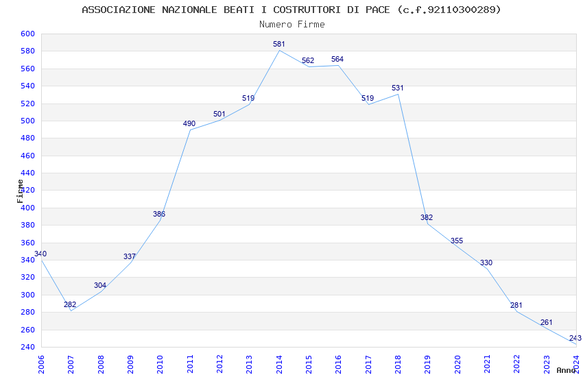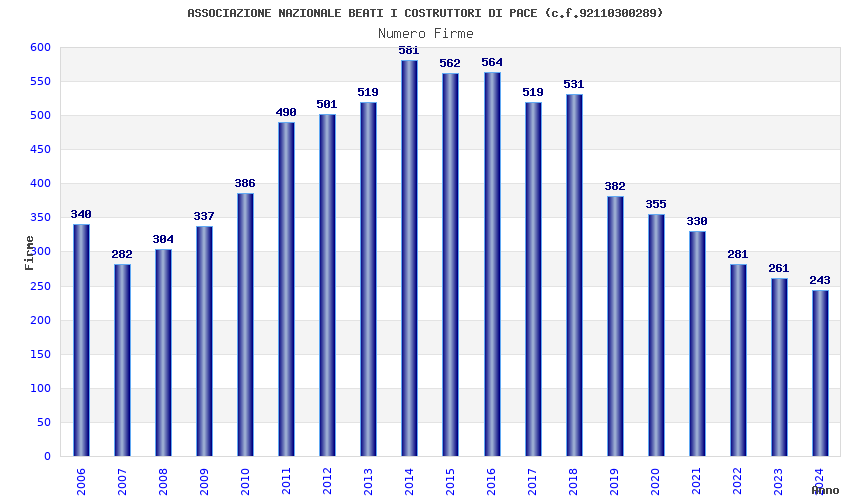 | Anno | Firme | Importi | Media | Naz. | Reg. | Prov. | Comu. |