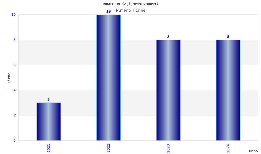 | Anno | Firme | Importi | Media | Naz. | Reg. | Prov. | Comu. |