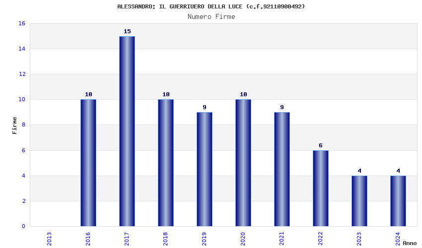 | Anno | Firme | Importi | Media | Naz. | Reg. | Prov. | Comu. |