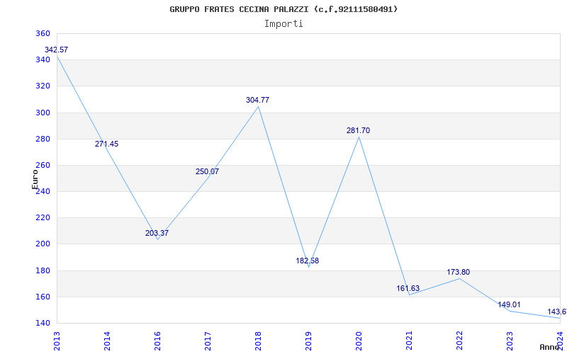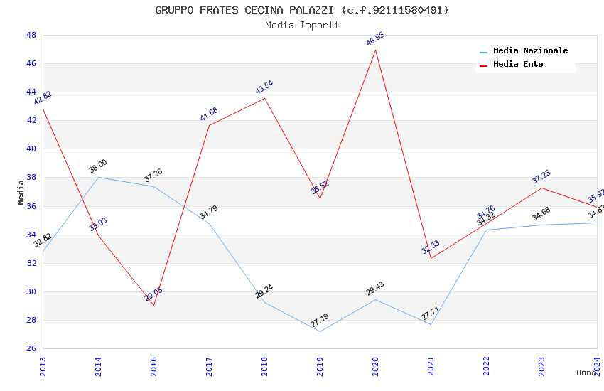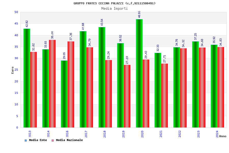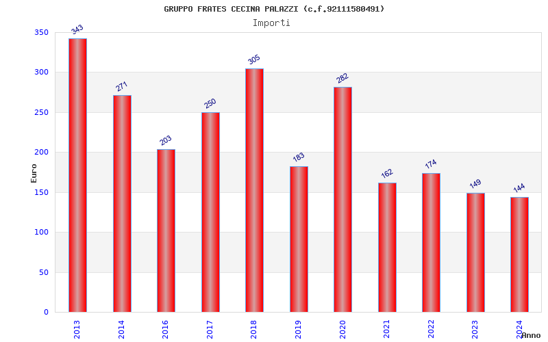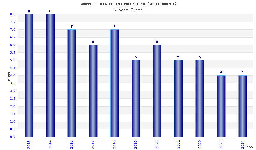 | Anno | Firme | Importi | Media | Naz. | Reg. | Prov. | Comu. |