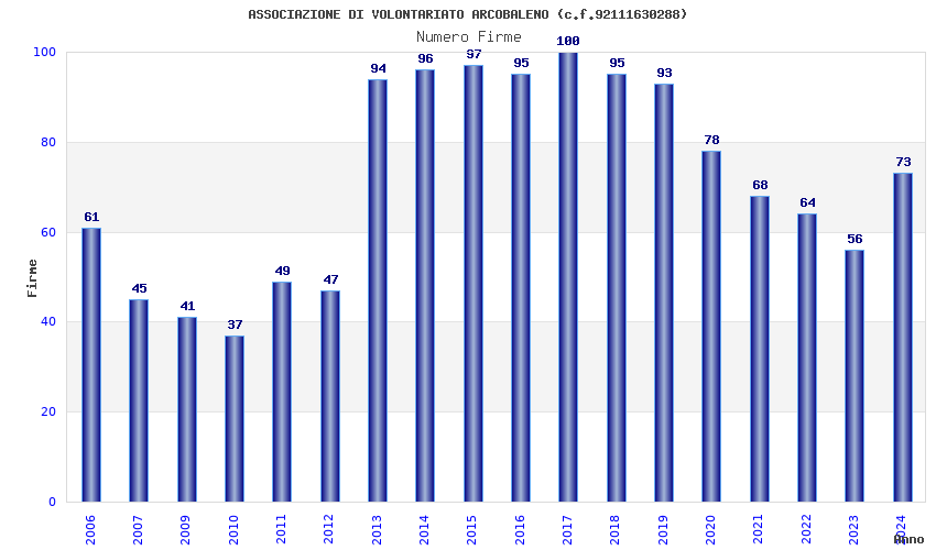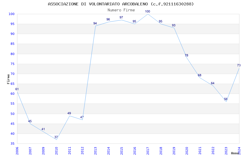 | 2024 | 73 | 2.712,88 | 37,16 | 18.916 | 1.740 | 377 | 5 |