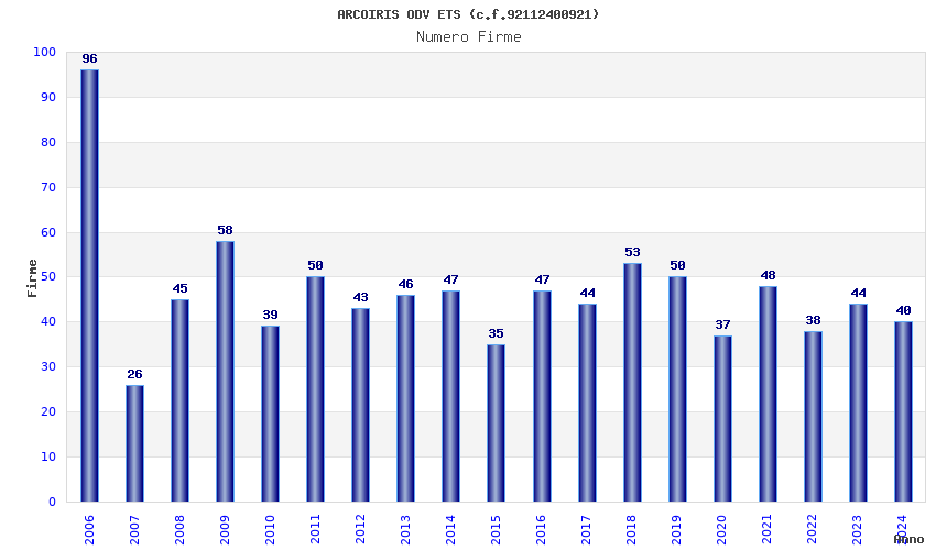 | Anno | Firme | Importi | Media | Naz. | Reg. | Prov. | Comu. |