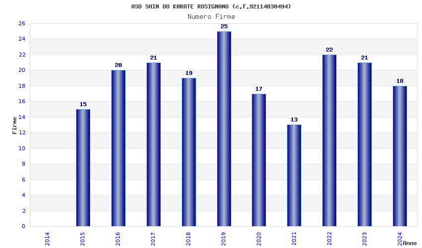 | 2019 | 25 | 550,26 | 22,01 | 44.653 | 2.786 | 200 | 17 |